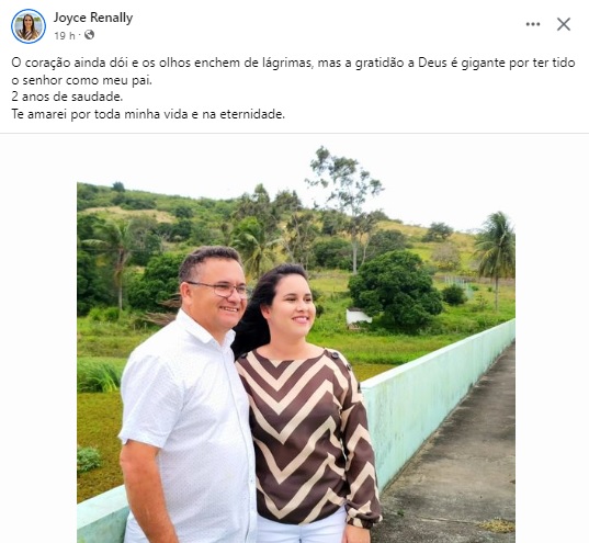 A Prefeita da cidade de Duas Estradas, Joyce Renally, prestou uma homenagem ao pai, o ex-prefeito Roberto Carlos, que morreu vítima da Covid-19 em maio de 2019.