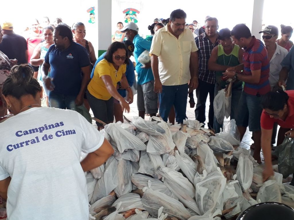 Mais de 2 mil famílias de Curral de Cima recebem peixes, arroz e macarrão na Semana Santa