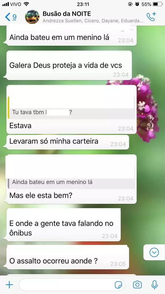 Conversas no grupo dos estudantes vítimas do assalto – Imagens : Reprodução /WhatsApp