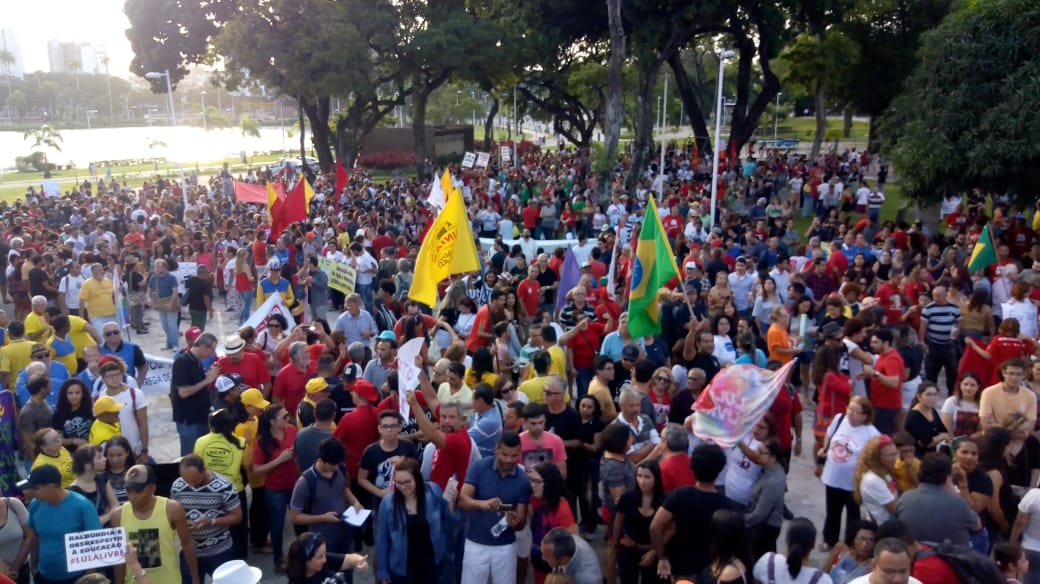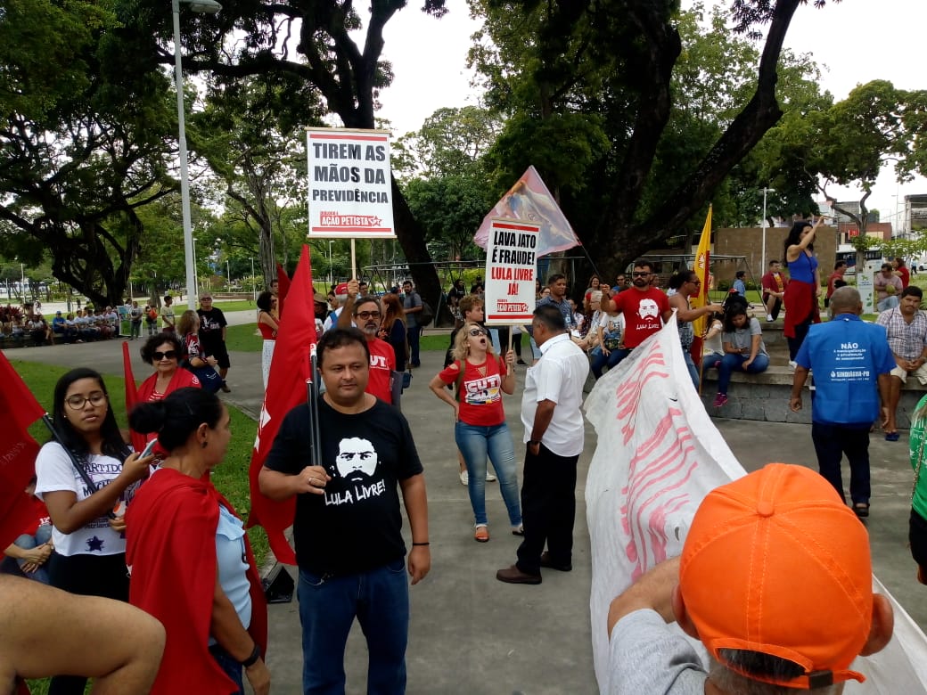 16h37 – O Parque Solon de Lucena em João Pessoa, capital da Paraíba já está tomada de manifestantes que protestam contra a reforma da previdência e os cortes na educação com diminuição de recursos para as universidades.