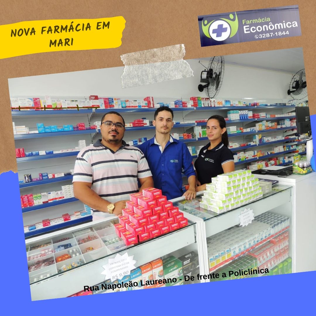 A cidade de Mari, Zona da Mata da Paraíba, ganhou nesta quinta-feira (05) uma nova Farmácia, localizada na rua Napoleão Laureano, S/N, no Centro, de frente a Policlínica Municipal.