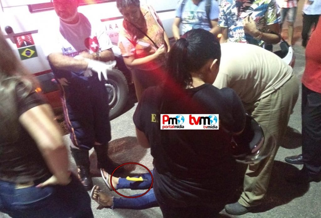 Mulher tem faca encravada na perna de forma acidental no centro de Guarabira/PB