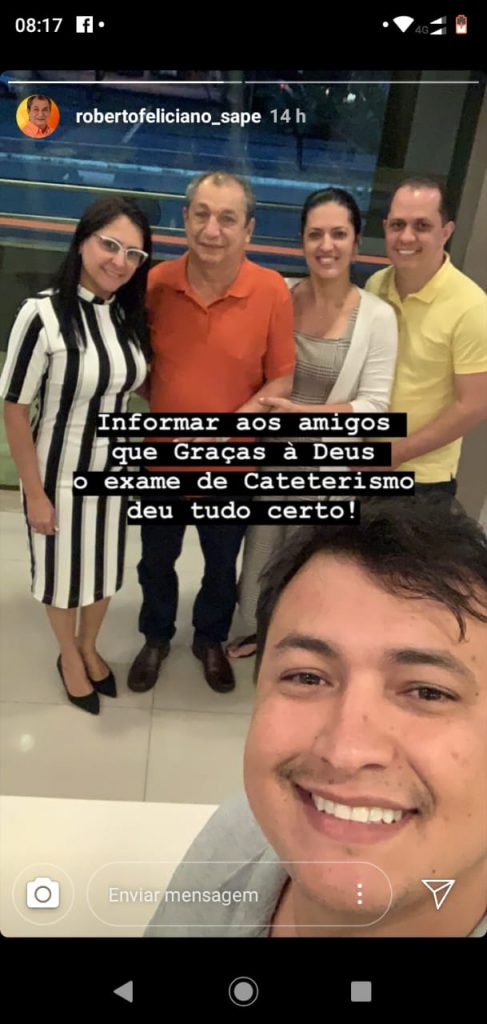 O Prefeito de Sapé, Roberto Feliciano, passou por um procedimento médico nesta segunda-feira (23) em João Pessoa. Segundo informações do próprio Roberto, publicadas em uma rede social, o prefeito sapeense passou por um cateterismo e seu estado de saúde é bom. O prefeito publicou uma foto ao lado de seus familiares para tranquilizar amigos e […]