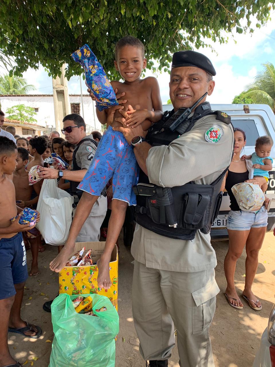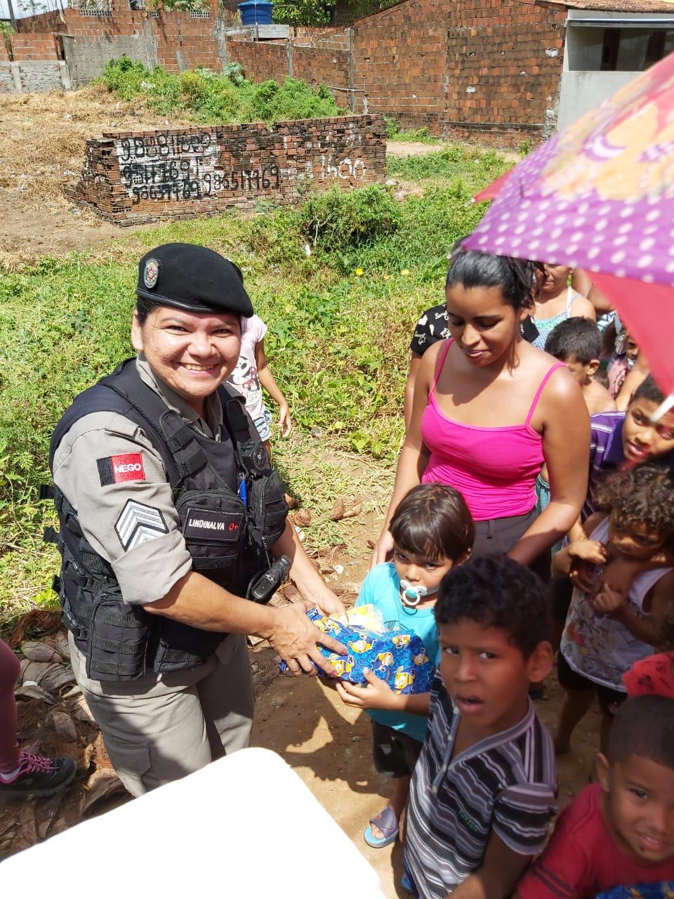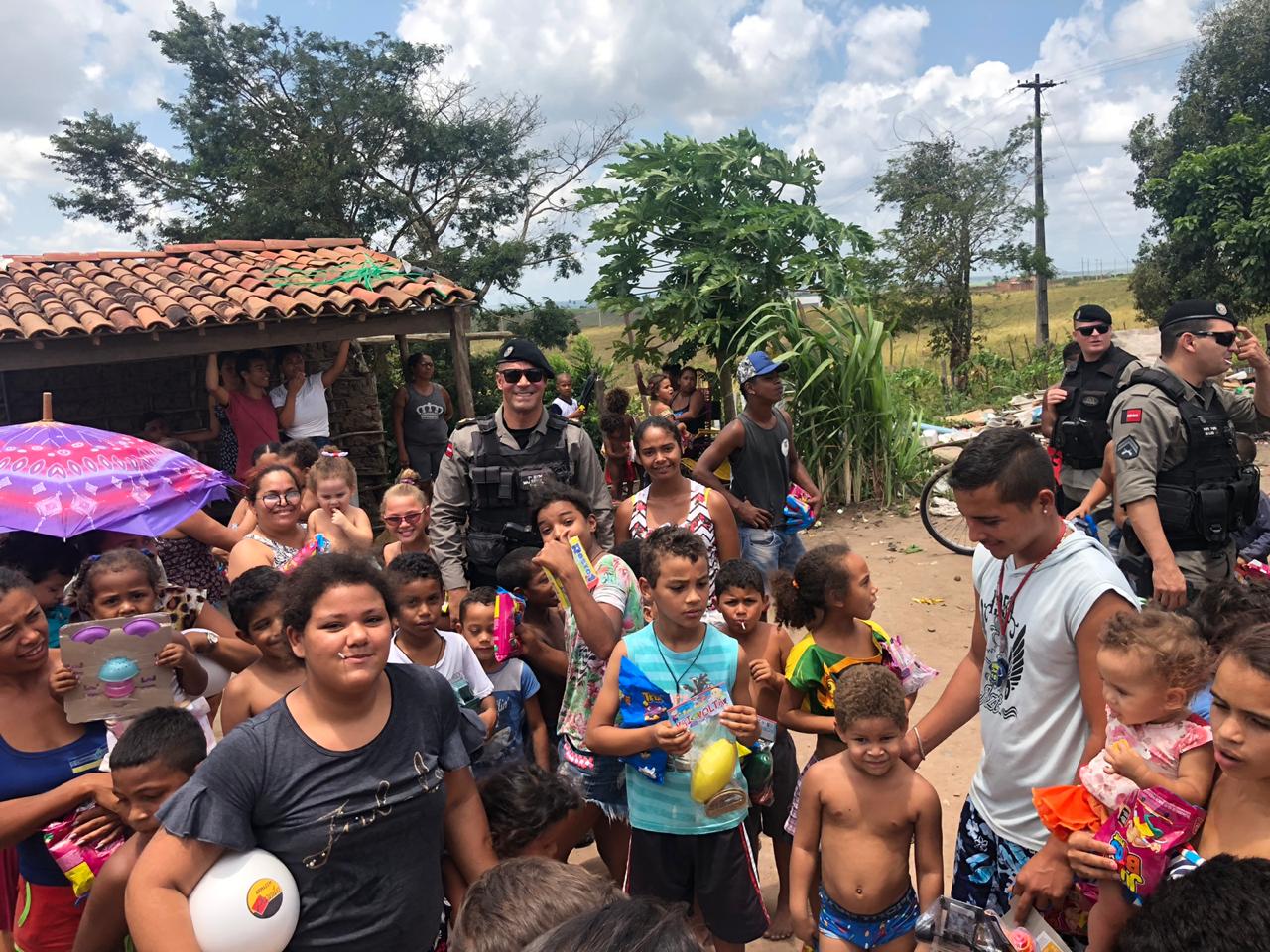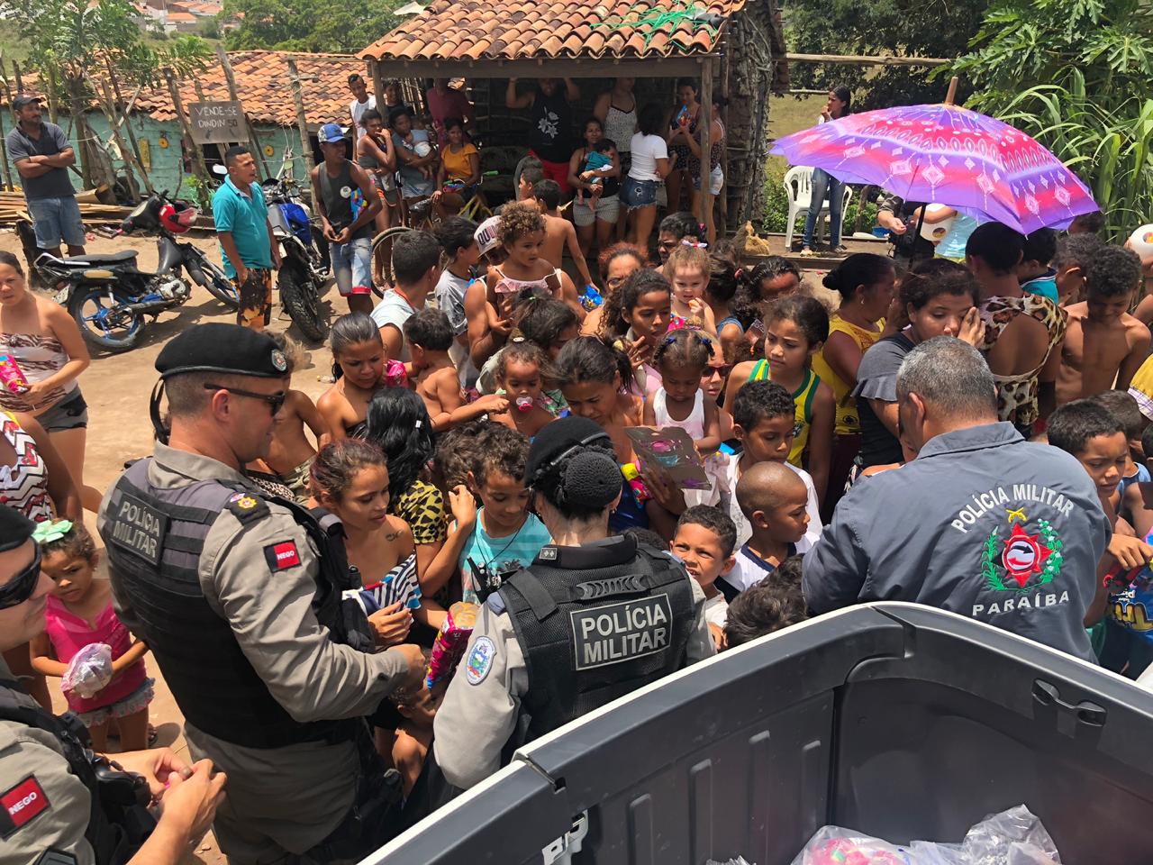 Foi deflagrada na manhã desta sexta-feira (11) a 4ª Edição da Operação Criança Feliz seguindo as diretrizes do Comandante Geral da PMPB. Foram arrecadados pelo 7º BPM mais de 1400 brinquedos, 500 sacolinhas com guloseimas e 600 cremosinhos, os quais foram distribuídos nas comunidades Santo Amaro e Augustolândia, em Várzea Nova, em Marcos Moura, nos bairros Cuba de Baixo e Boa Vista em Sapé.
