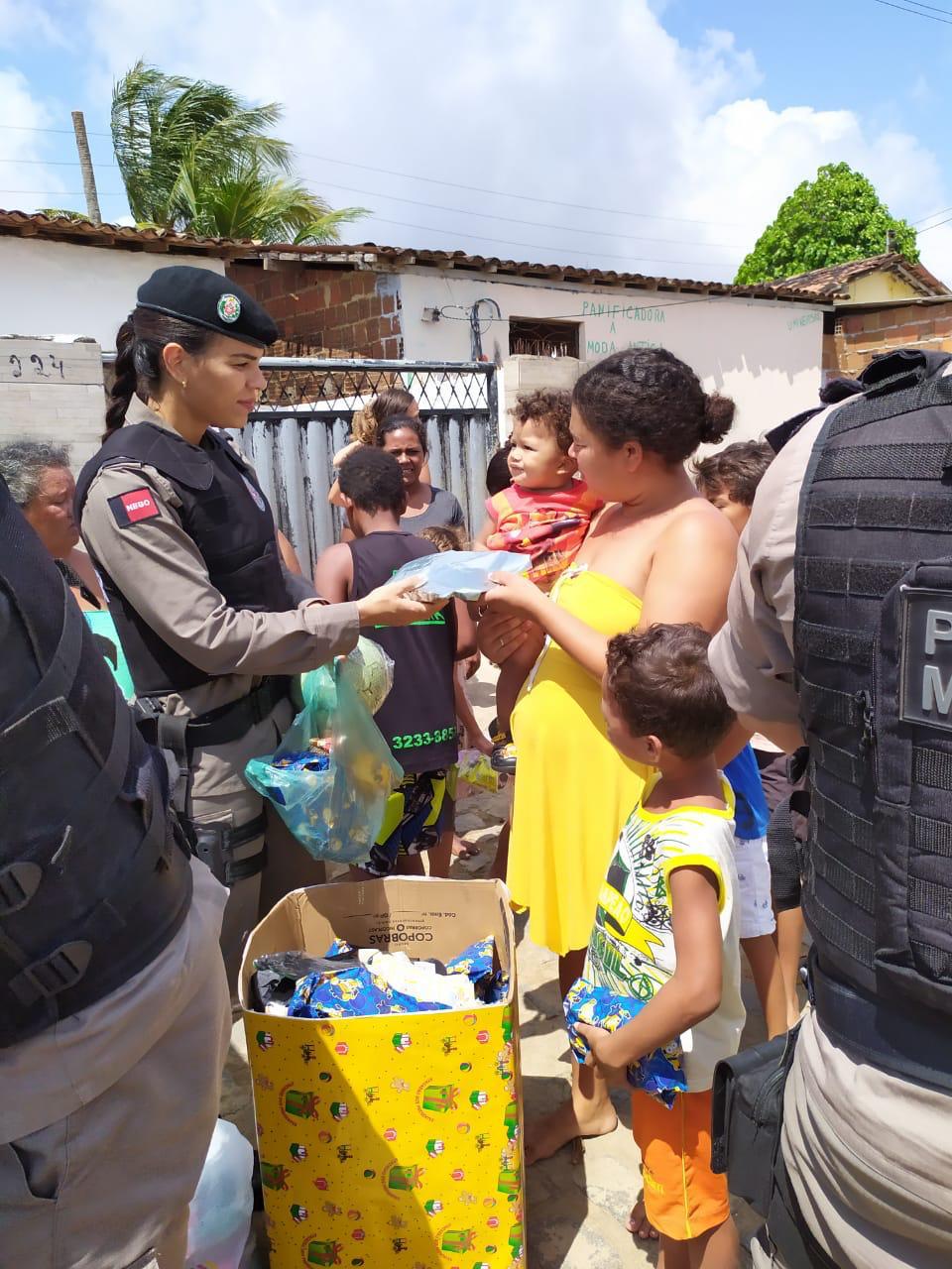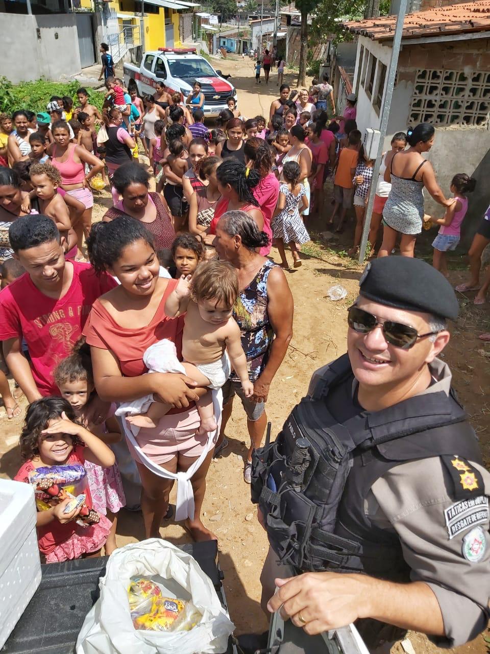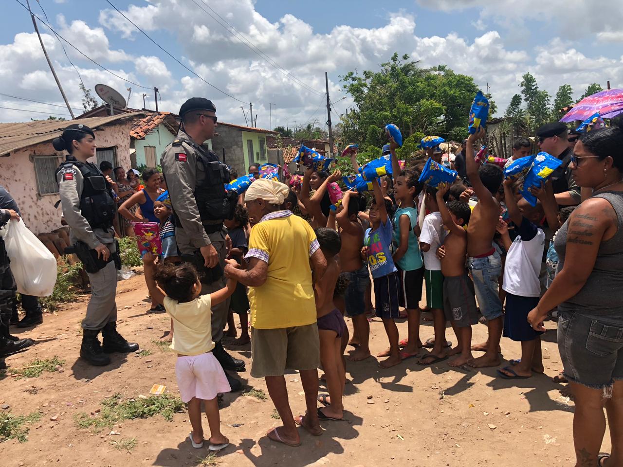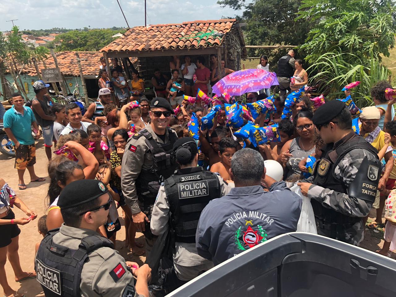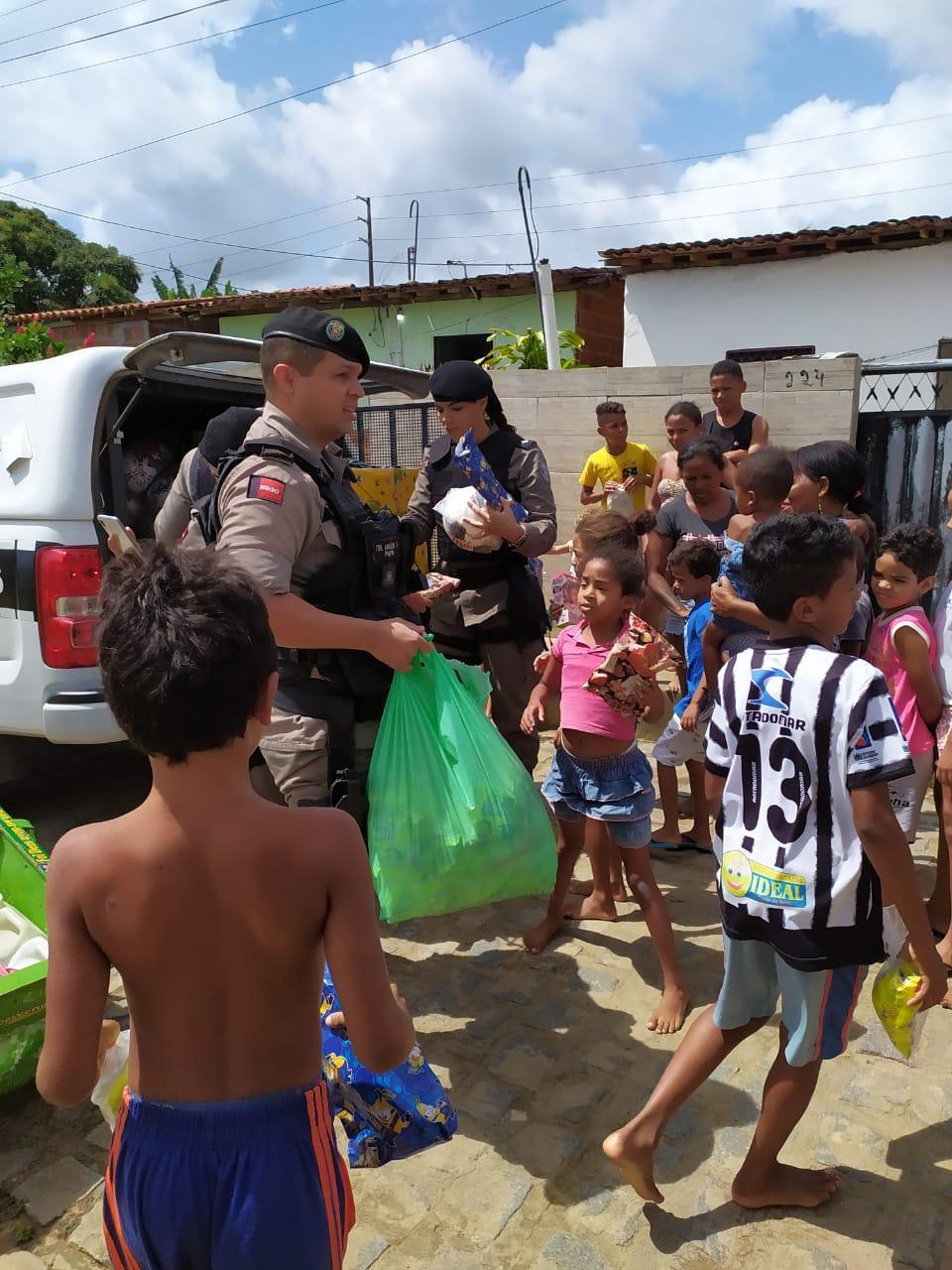Foi deflagrada na manhã desta sexta-feira (11) a 4ª Edição da Operação Criança Feliz seguindo as diretrizes do Comandante Geral da PMPB. Foram arrecadados pelo 7º BPM mais de 1400 brinquedos, 500 sacolinhas com guloseimas e 600 cremosinhos, os quais foram distribuídos nas comunidades Santo Amaro e Augustolândia, em Várzea Nova, em Marcos Moura, nos bairros Cuba de Baixo e Boa Vista em Sapé.