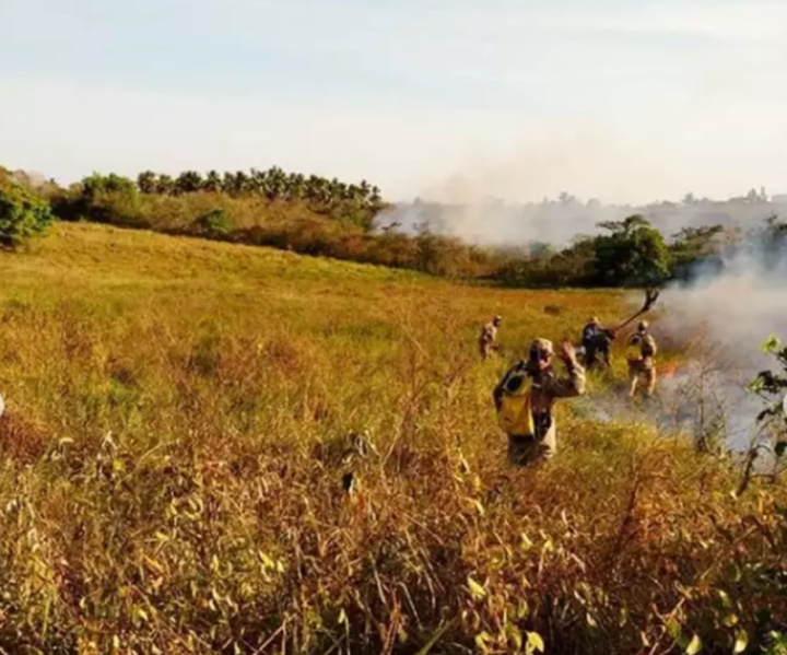 Bombeiros combatem incêndio florestal entre Guarabira e Araçagi, na Paraíba