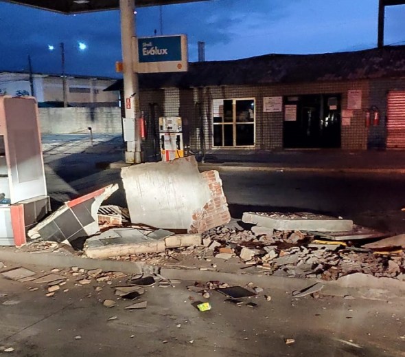 Grupo derruba parede com caminhão e rouba cofre de posto
