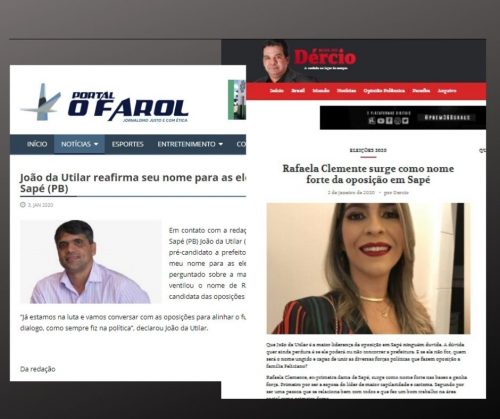 Uma confusão tomou conta do imaginário do eleitor sapeense quanto a chapa da oposição no agrupamento do ex-prefeito João da Utilar. Nesta quinta-feira (02) logo que passado a ressaca do ano novo, surge uma informação dada pelo blogueiro Dércio Alcântara de que a ex-Primeira Dama de Sapé, Rafaela Clemente deve ser a candidata do grupo […]