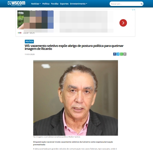 O jornalista Walter Santos do conceituado portal Wscom e da Revista NORDESTE voltou a criticar em artigo publicado neste sábado (11) os vazamentos seletivos das delações dos presos na Calvário à imprensa nacional que tem viés bolsonarista, o que na opinião do analista político, tem como objetivo queimar a imagem de Ricardo Coutinho. Leia também: Analista […]