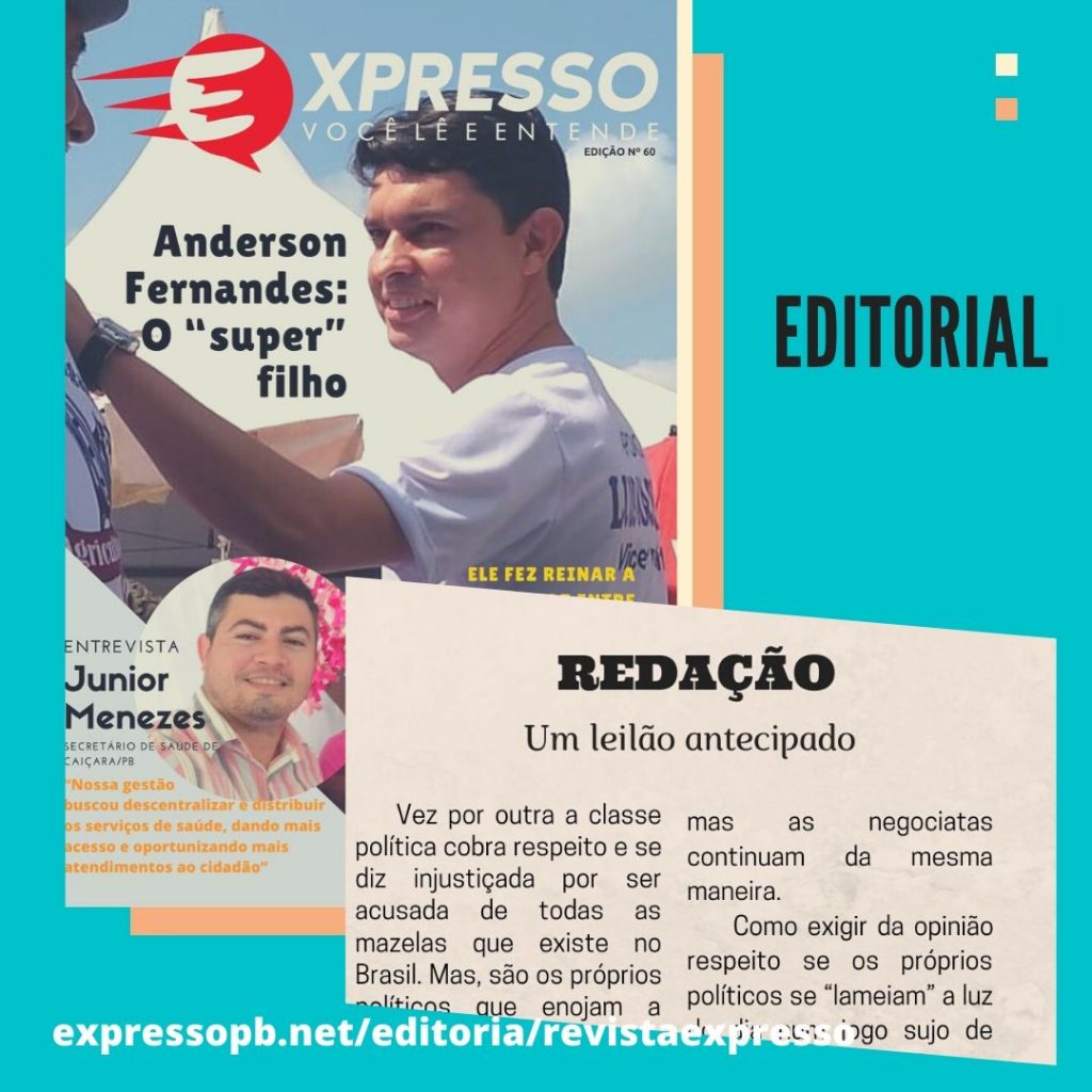 A EXPRESSO de nº 60 trás um editorial bastante contundente com críticas a classe política quanto ao ‘leilão’ que se dá com a proximidade do fim da janela partidária, para que políticos que desejam disputar as eleições de outubro possam trocar de legenda. “O período da janela partidária com vistas as eleições de outubro próximo […]