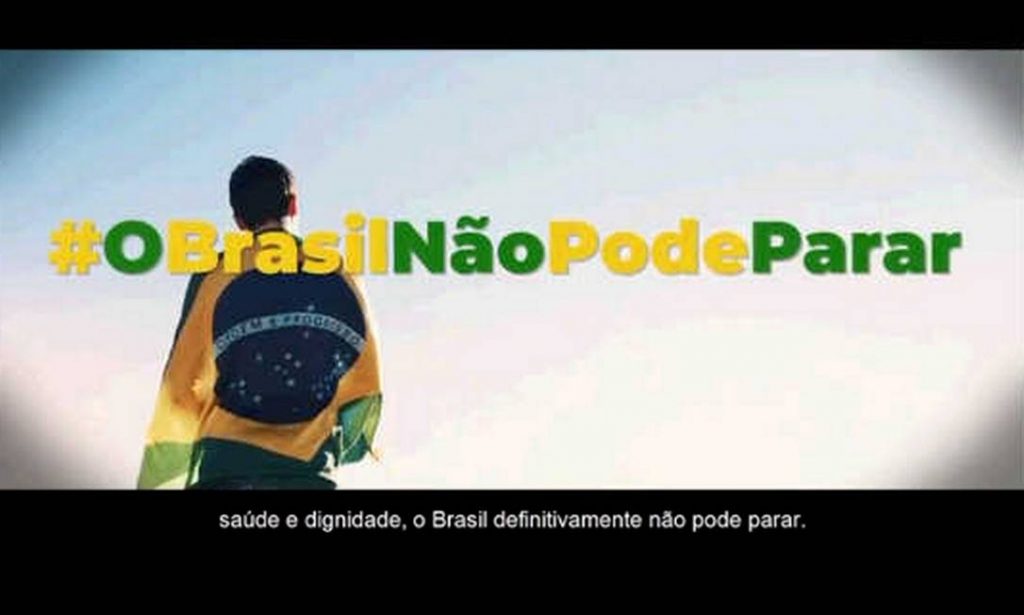 A campanha do governo Jair Bolsonaro em defesa do isolamento vertical, que traz o slogan “O Brasil não pode parar” custará R$ 4,8 milhões aos cofres públicos. Segundo o blog do jornalista Guilherme Amado, o material está sendo elaborado pela agência IComunicação. A peça publicitária foi classificada como emergencial e, portanto, foi realizada sem licitação. A escolha do […]