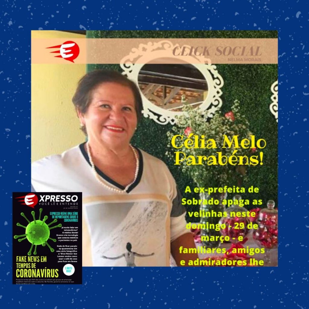 Veja a coluna Click Social da Nelma Morais que trás uma homenagem a ex-prefeita de Sobrado Célia Melo na passagem de seu aniversário. Da Redação Do ExpressoPB/Editoria REVISTA EXPRESSO
