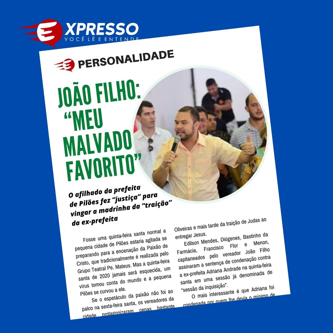 A Personalidade da edição de nº 62 da Revista EXPRESSO é o jovem João Filho, vereador da cidade de Pilões. EXPRESSO traça o perfil do daquele que se tornou um dos maiores algozes políticos da ex-prefeita Adriana Andrade. A versão da EXPRESSO é totalmente digital, está disponível em nossa plataforma no ISSU e na flipsnack e em nossa plataforma aqui no site.