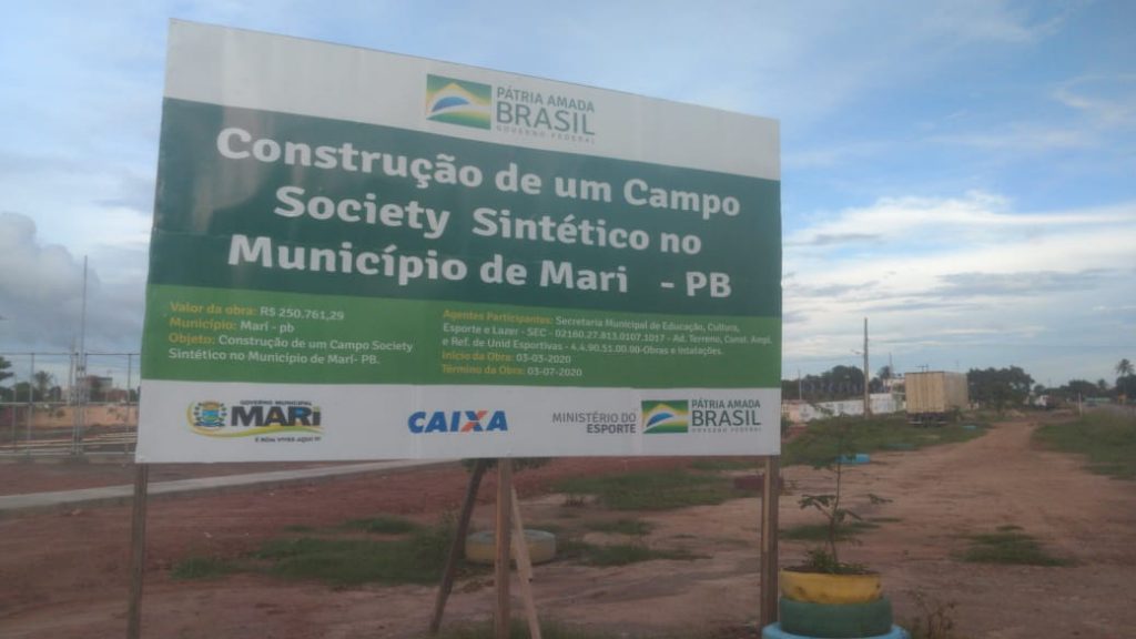 Em Mari, gestão mantém obras que estavam em andamento e campo society segue em ritmo acelerado