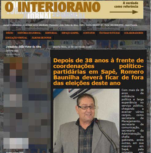 Site dá como certa, após 38 anos de atuação, saída de Romero Baunilha da articulação política-partidária em Sapé
