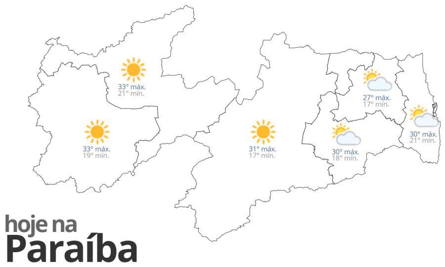 Previsão do tempo para esta segunda-feira em toda Paraíba