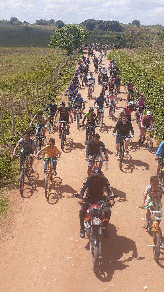 Todos seguiram pedalando até a zona rural, percorrendo cerca de 8km. Lá, pausa para um descanso, água fresca e muita descontração entre amigos, pois a subida era mais íngreme na volta. O que não foi problema, desde os mais pequeninos até o mais idoso, todos demostraram a disposição que o esporte nos traz para levar a vida com mais saúde.
