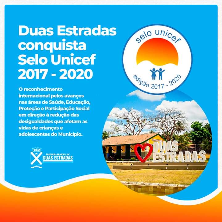 Duas Estradas recebe, pela primeira vez, Selo internacional UNICEF, por avanços nas áreas de Assistência Social, Educação e Saúde