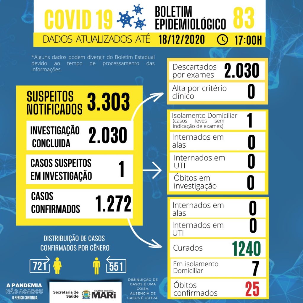 A Secretaria de Saúde do Município de Mari-PB, divulga o Boletim Epidemiológico da COVID 19, com dados atualizados até às 17 horas desta sexta-feira (18). De acordo com o novo Boletim, foram registrados 20 novos casos de infecção pelo Coronavírus e 1 caso está sendo investigado. Os números são comparativos em relação ao Boletim anterior, […]