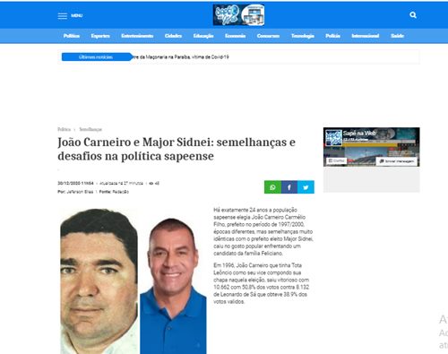 Site compara a eleição do Major Sidnei e João Carneiro em Sapé: “até os vices tem o mesmo sobrenome”
