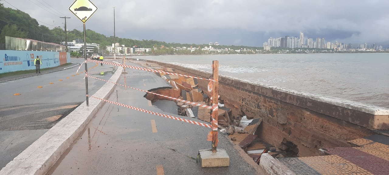 Parte de uma ciclovia na Orla do bairro do Cabo Branco, em João Pessoa, cedeu nesta segunda-feira (1). O trecho fica em frente ao Pontal do Cabo.