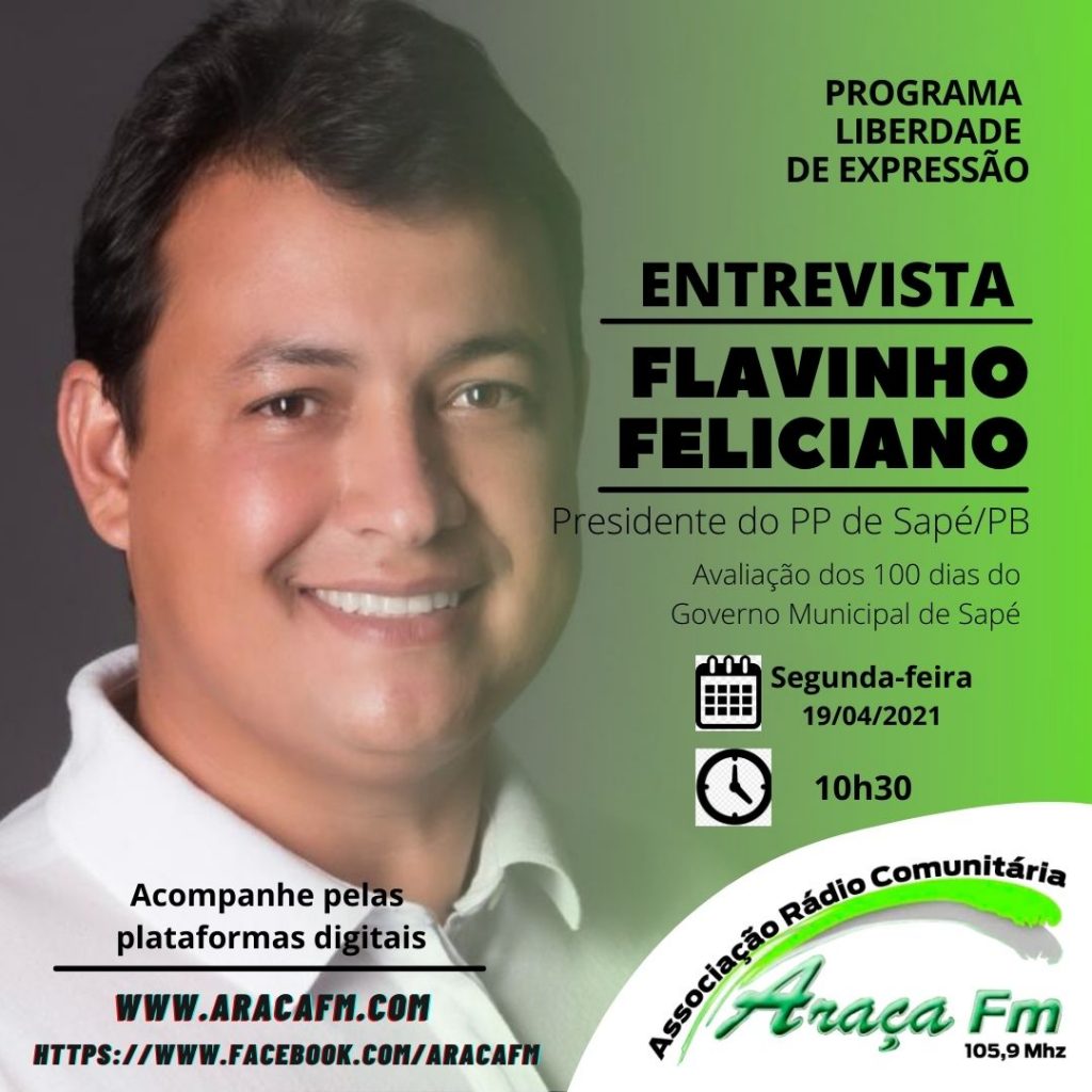 Presidente do PP de Sapé, Flavinho Feliciano, será entrevistado na Araçá FM de Mari na segunda-feira (19)