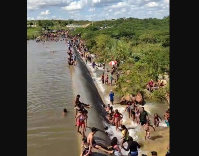 População ignora pandemia e lota açude que sangrou no Cariri da Paraíba