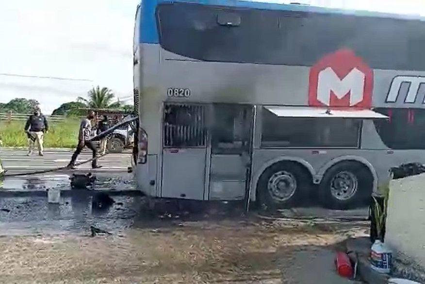 Vídeos: ônibus com jogadores do Botafogo-PB fica parcialmente destruído após incêndio