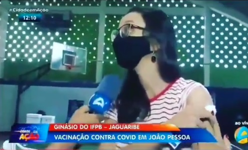 Popular constrange repórter da TV Arapuan ao falar sobre emoção de se vacinar: ” é um FORA BOLSONARO bem grande!”