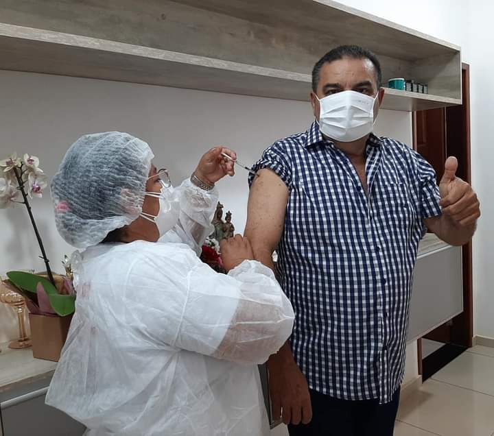 Prefeito de Curral de Cima, Totó Ribeiro (PP), recebe primeira dose da vacina contra a Covid-19