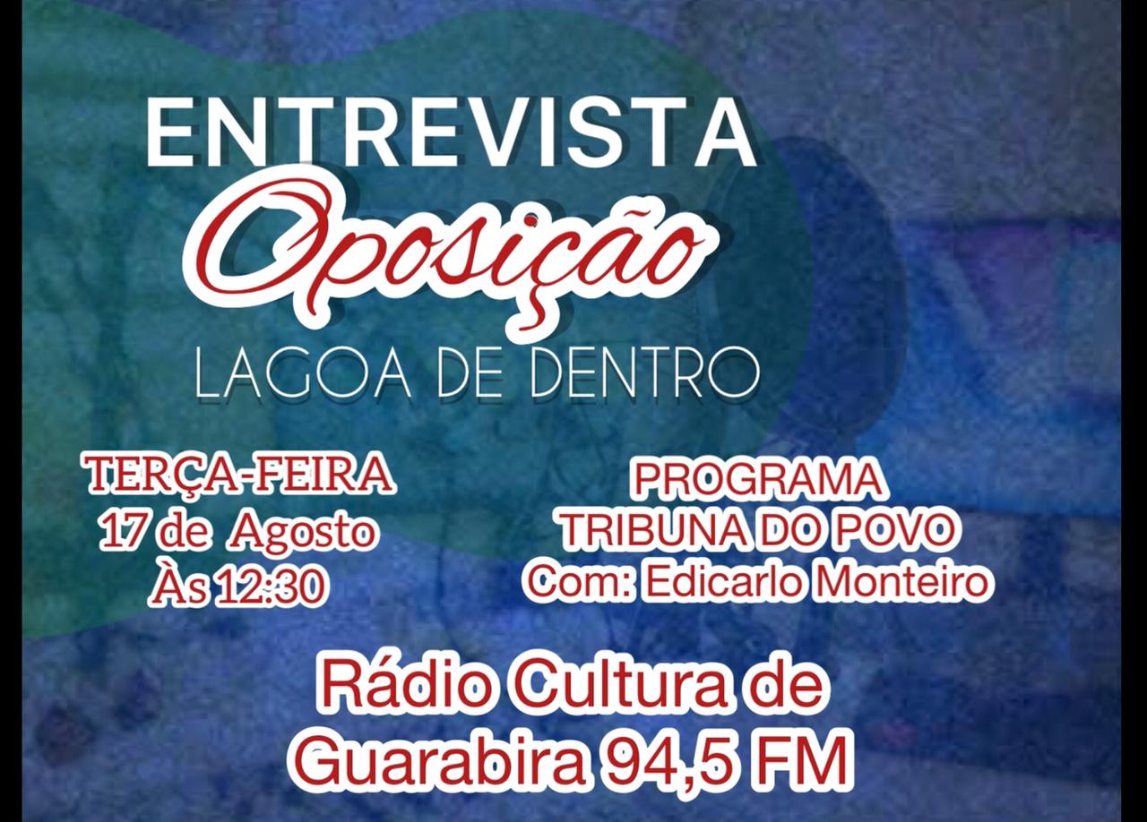 A oposição de Lagoa de Dentro deverá quebrar o silêncio na próxima terça-feira, dia 17 de Agosto, os membros da oposição irão conceder entrevista na Rádio Cultura de Guarabira, ás 12h30, com o radialista Edicarlos Monteiro.