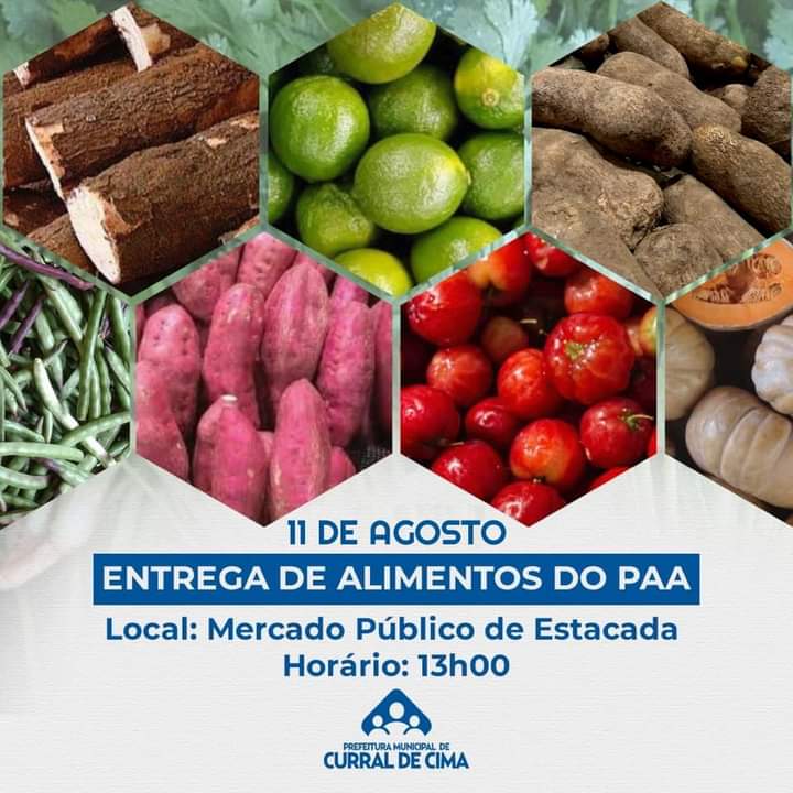 Curral de Cima: Secretarias de Ação Social e Agricultura realiza nova entrega de alimentos do PAA; a ação acontece nesta Quarta-feira (11) no Mercado Público do distrito de Estacada