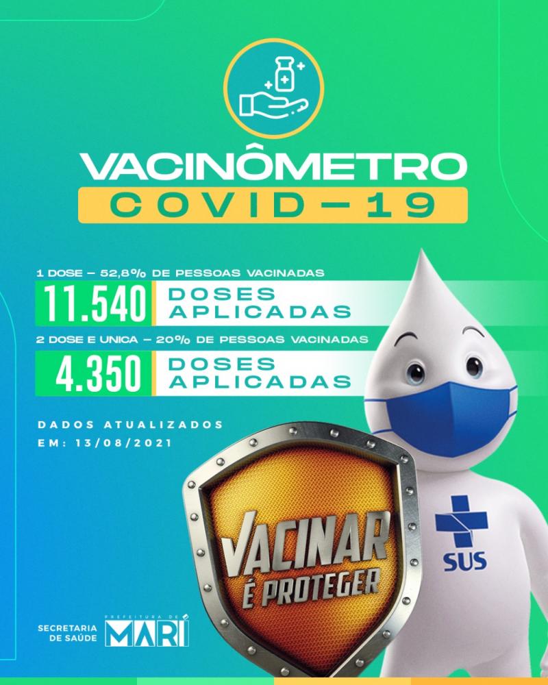 Mari atinge a marca de 11.540 pessoas vacinadas na 1ª dose(52,8%) e 4350 na 2° dose (20%) de vacina contra Covid-19
