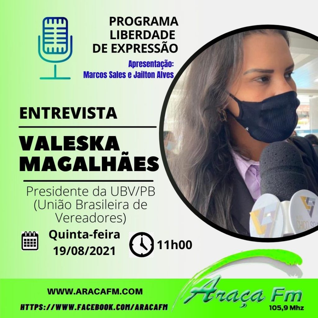 Presidente da UBV, vereadora Valeska Magalhães será entrevista nesta 5ª na Araçá FM