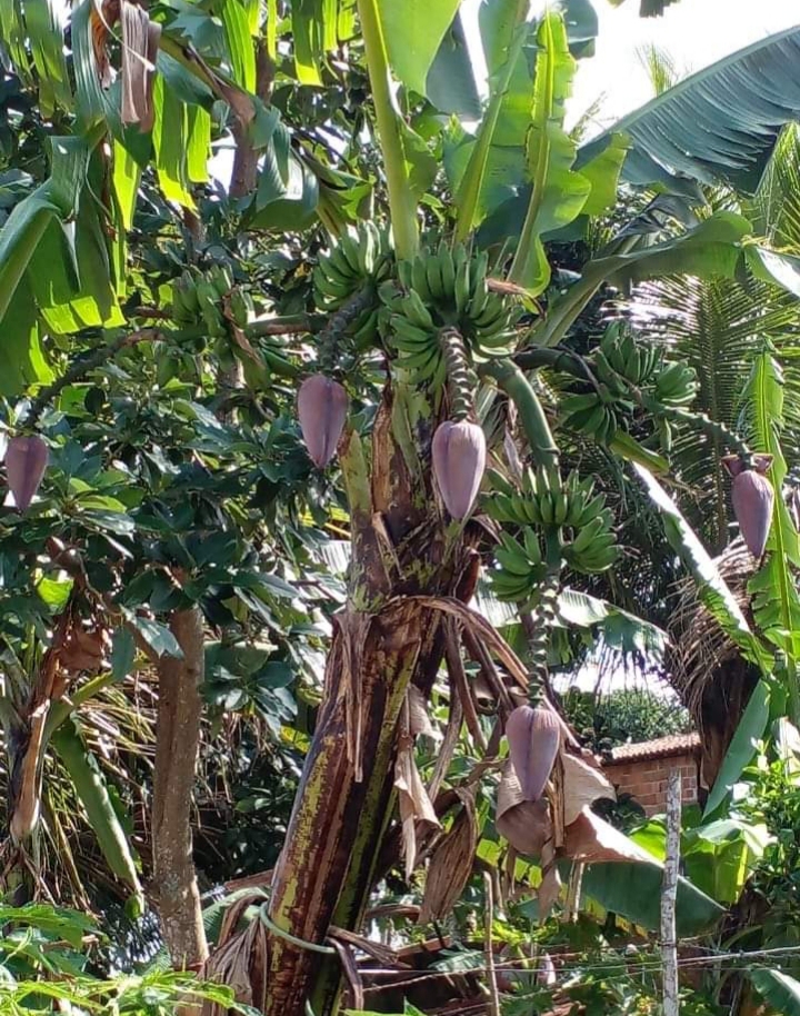 Agricultor de Serra da Raíz fica surpreso com bananeira com 5 cachos