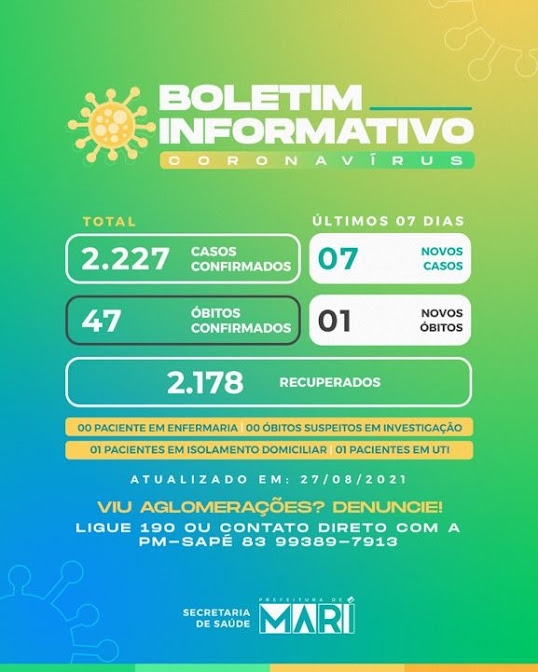 VEJA: Secretaria de saúde de Mari divulga novo Boletim Epidemiológico