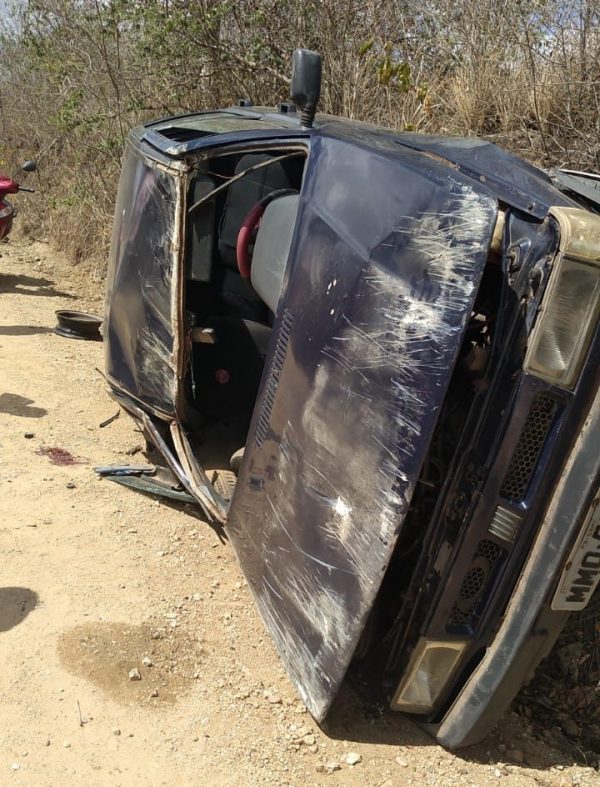 Um veículo Fiat Uno capotou na estrada deixando três pessoas feridas, dentre eles uma mulher  em estado grave que  quase teve o braço decepado.
