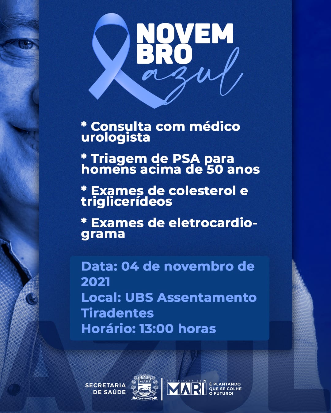 Em respeito e atenção a saúde dos homens do campo, com o objetivo de promover a mudança de comportamento dos homens para que incorporem o hábito de consultar um médico e realizar exames preventivos com maior freqüência, a prefeitura municipal de Mari através da secretaria de saúde, abre oficialmente nesta quinta (4) a Campanha Novembro Azul