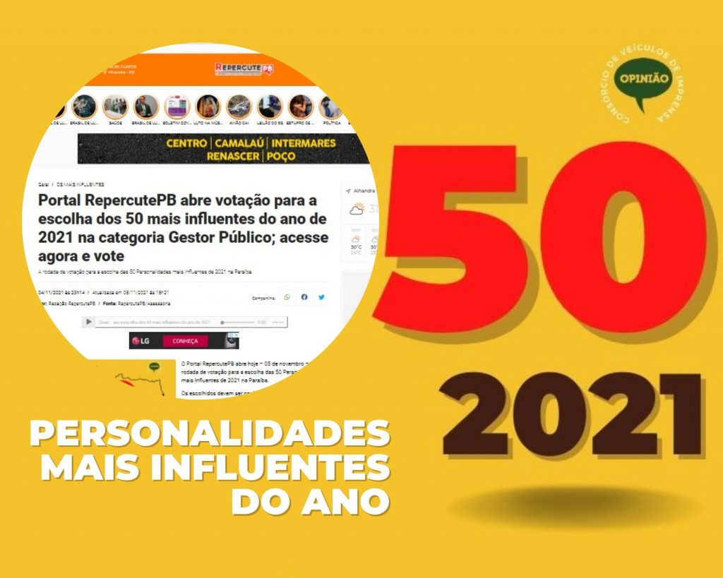 O primeiro dia de votação para a escolha das 50 Personalidades mais Influentes da PB no ano de 2021 já tem apresentado o sucesso esperado da parceria entre os veículos de comunicação que compõe o Consorcio de Imprensa para esta finalidade. A escolha teve início pela categoria GESTOR PÚBLICO e foi aberta pelo Portal RepercutePB […]