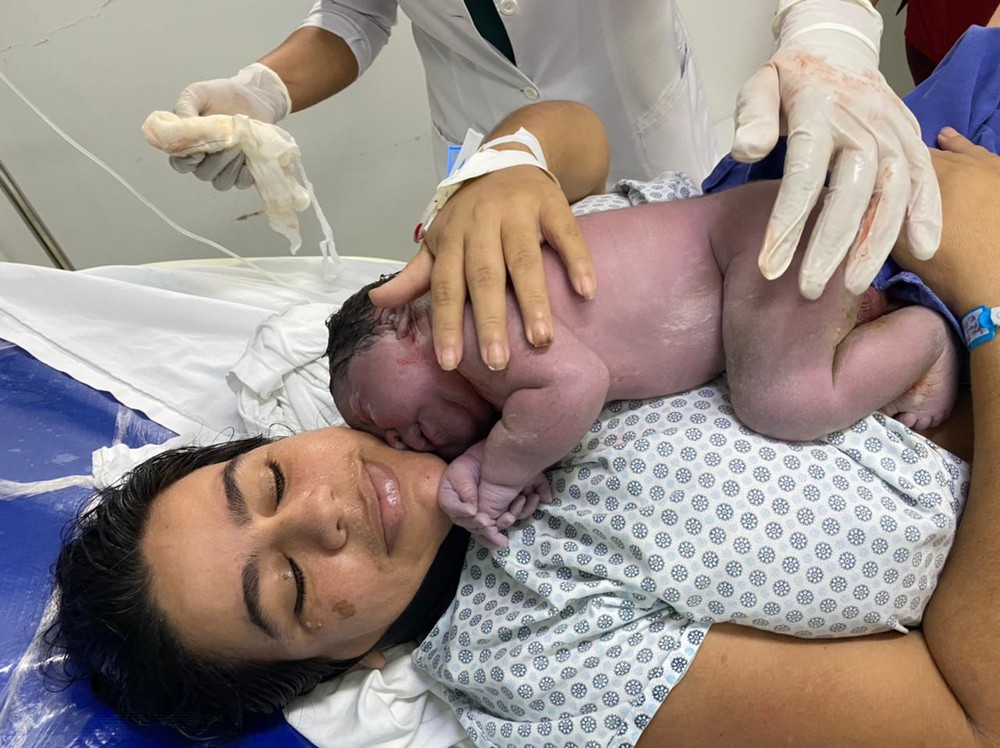 Pela 2ª vez, mãe dá à luz bebê com mais de 5 kg; criança impressionou equipe médica