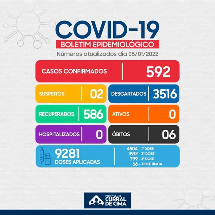 A Prefeitura de Curral de Cima, através da Secretaria de Saúde, divulgou nesta quarta-feira (5) que o município não tem nenhum caso ativo de Covid-19. As informações são da Coordenação de Vigilância Epidemiológica.