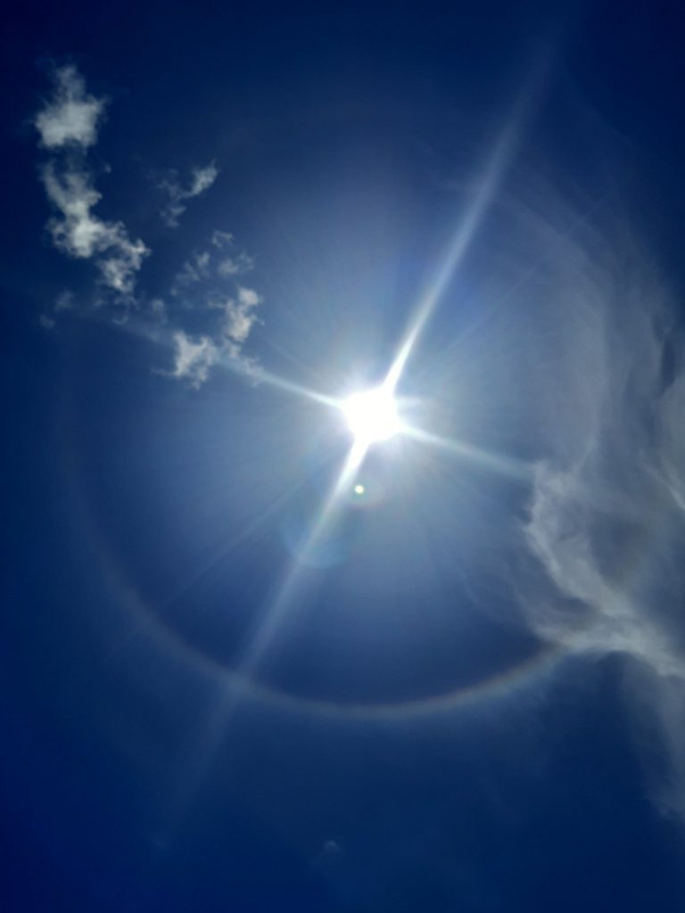 Halo Solar forma arco-íris circular no céu da Paraíba