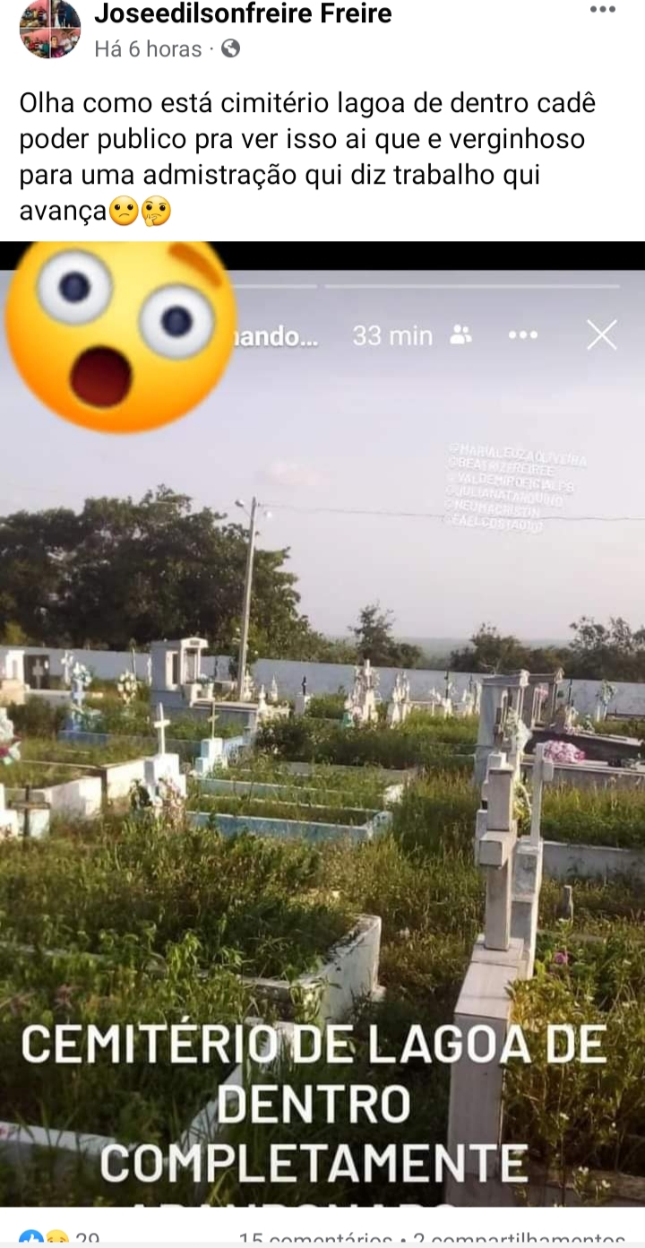 Imagens mostram o mato alto entre os túmulos. O autor da postagem descreveu que o mato está “tomando conta” do local. A publicação gerou uma série de comentários de internautas, a maioria criticando o poder público pela falta de cuidado com o local. Em uma delas, um morador classificou a situação como vergonhosa.