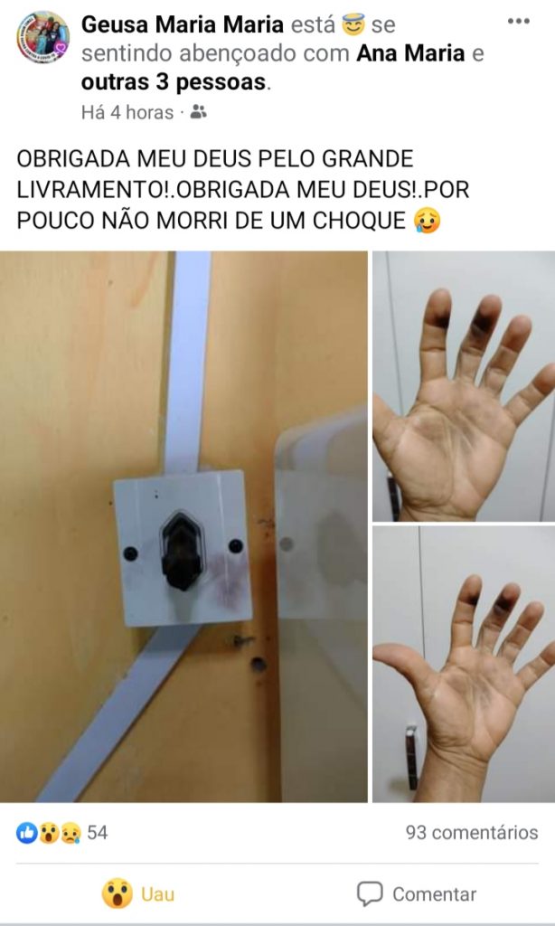Susto: Mulher leva choque elétrico ao tentar ligar rádio na tomada em Duas Estradas
