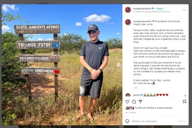 João Gomes preocupa fãs com desabafo nas redes sociais: “Vontade de sumir”
