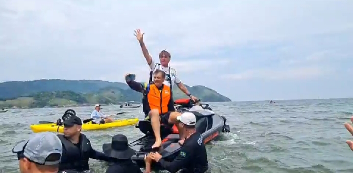 Em São Paulo, Bolsonaro anda de lancha e tira fotos com apoiadores na praia