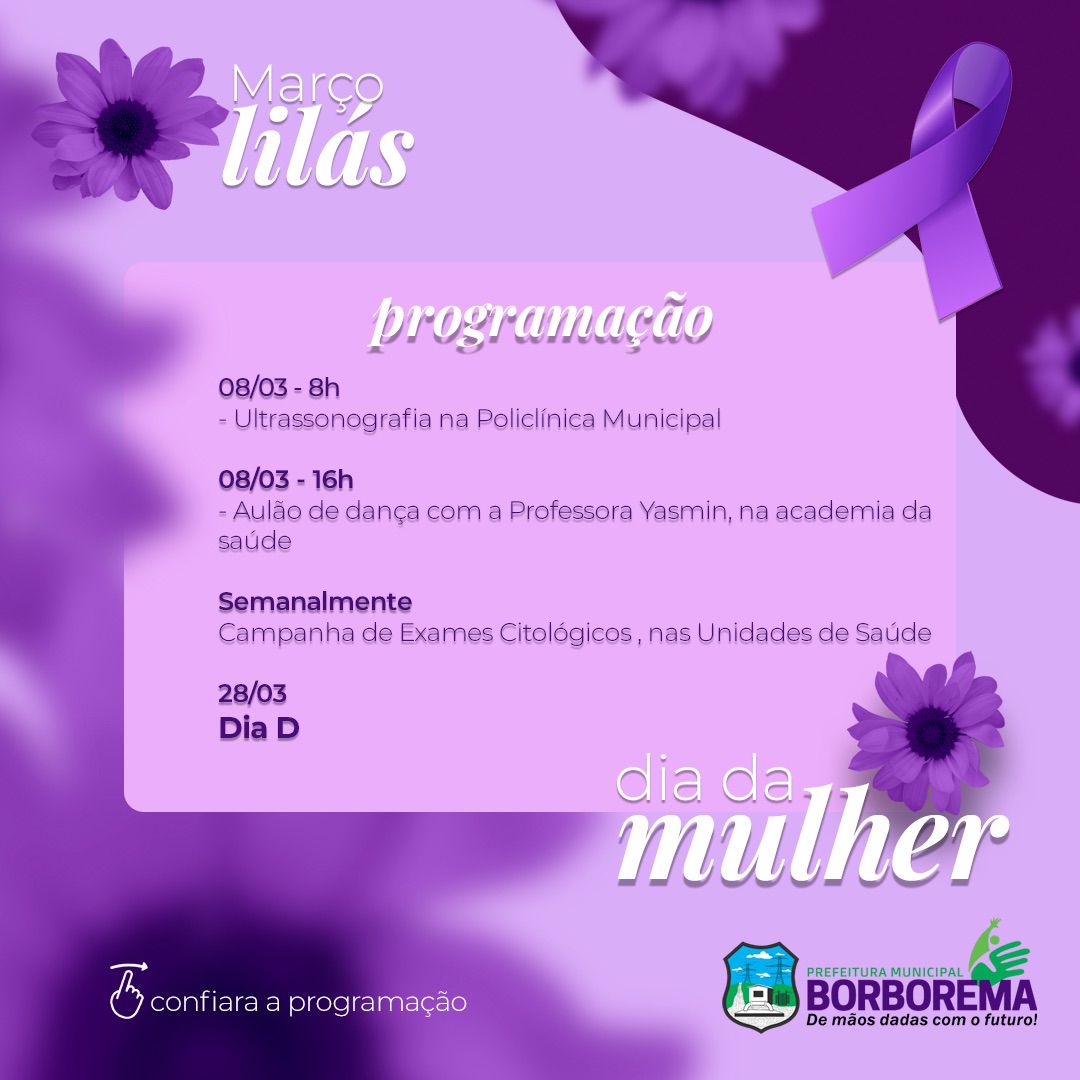 Celebrado em 8 de março, o Dia Internacional da Mulher será comemorado em Borborema, brejo paraibano, numa extensa programação chamada de Março Lilás – a cor que simboliza a luta pelos direitos das mulheres.