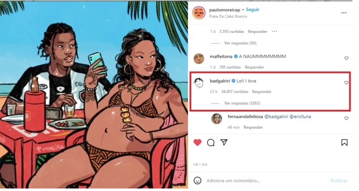 Rihanna reagiu ao desenho do ilustrador paraibano Paulo Moreira, o qual desenhou a cantora grávida e o marido como se estivessem em um quiosque na Praia do Cabo Branco, em João Pessoa. A ilustração foi publicada nas redes sociais de Paulo Moreira nessa quinta-feira (24) e Rihanna reagiu no mesmo dia, na publicação. “Baby rihaninho”, […]