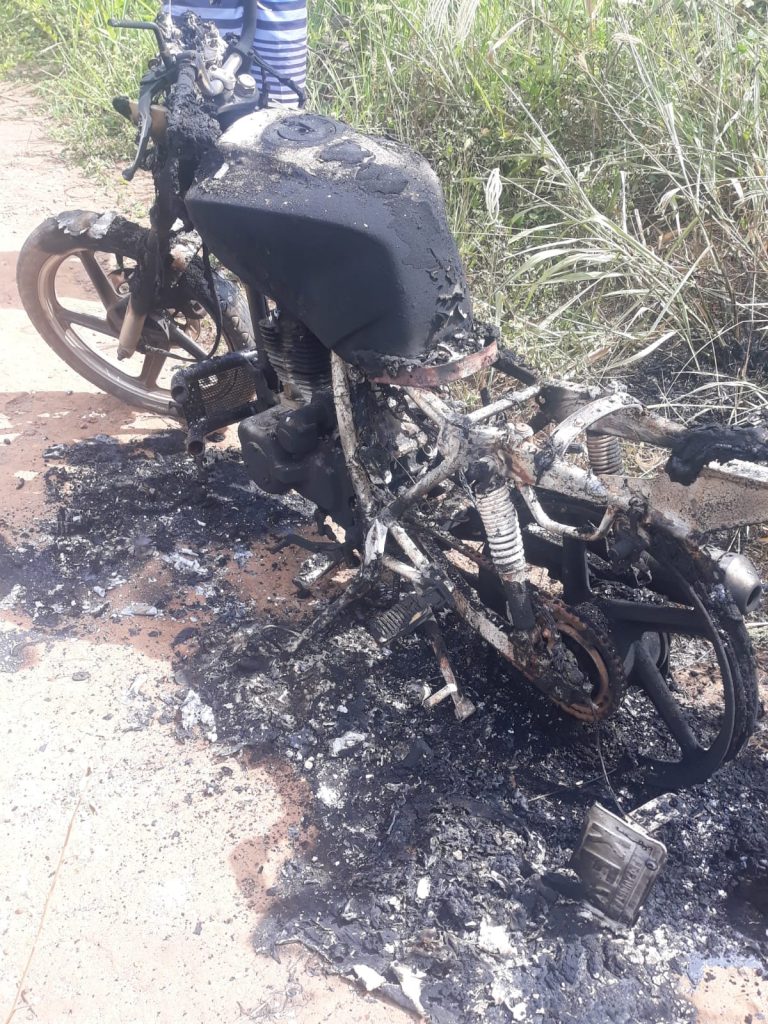 FOTO: Motocicleta encontrada incendiada na estrada de Mulungu, na grande Guarabira