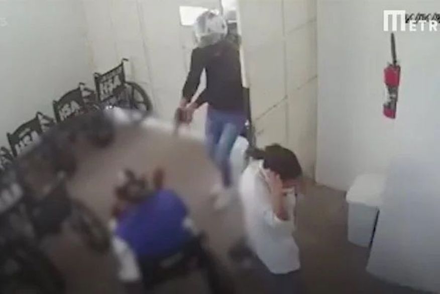 Imagens feitas por câmeras de segurança mostram o momento em que os criminosos entram no local e fazem os disparos contra a barriga e a cabeça do homem, que cai da cadeira de rodas e morre.